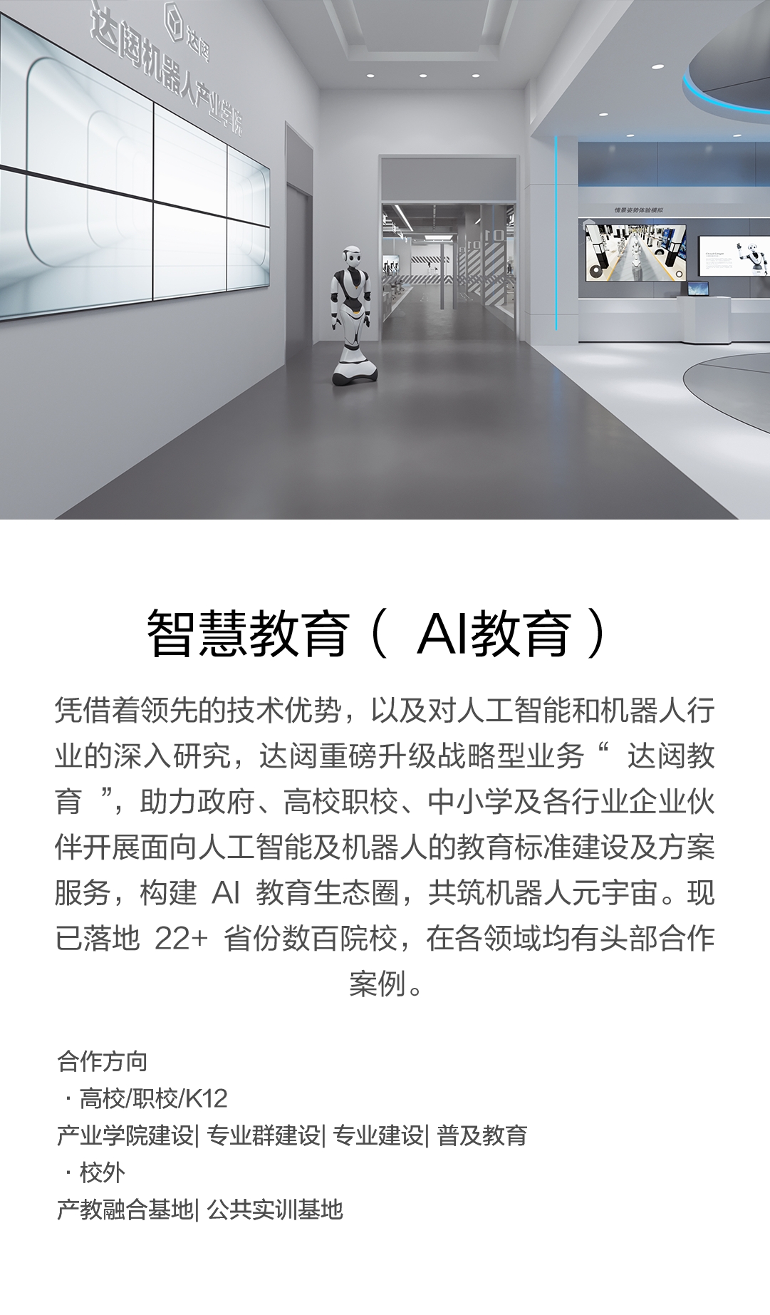 开展面向人工智能及机器人的教育标准建设及方案服务,构建AI教育生态圈,